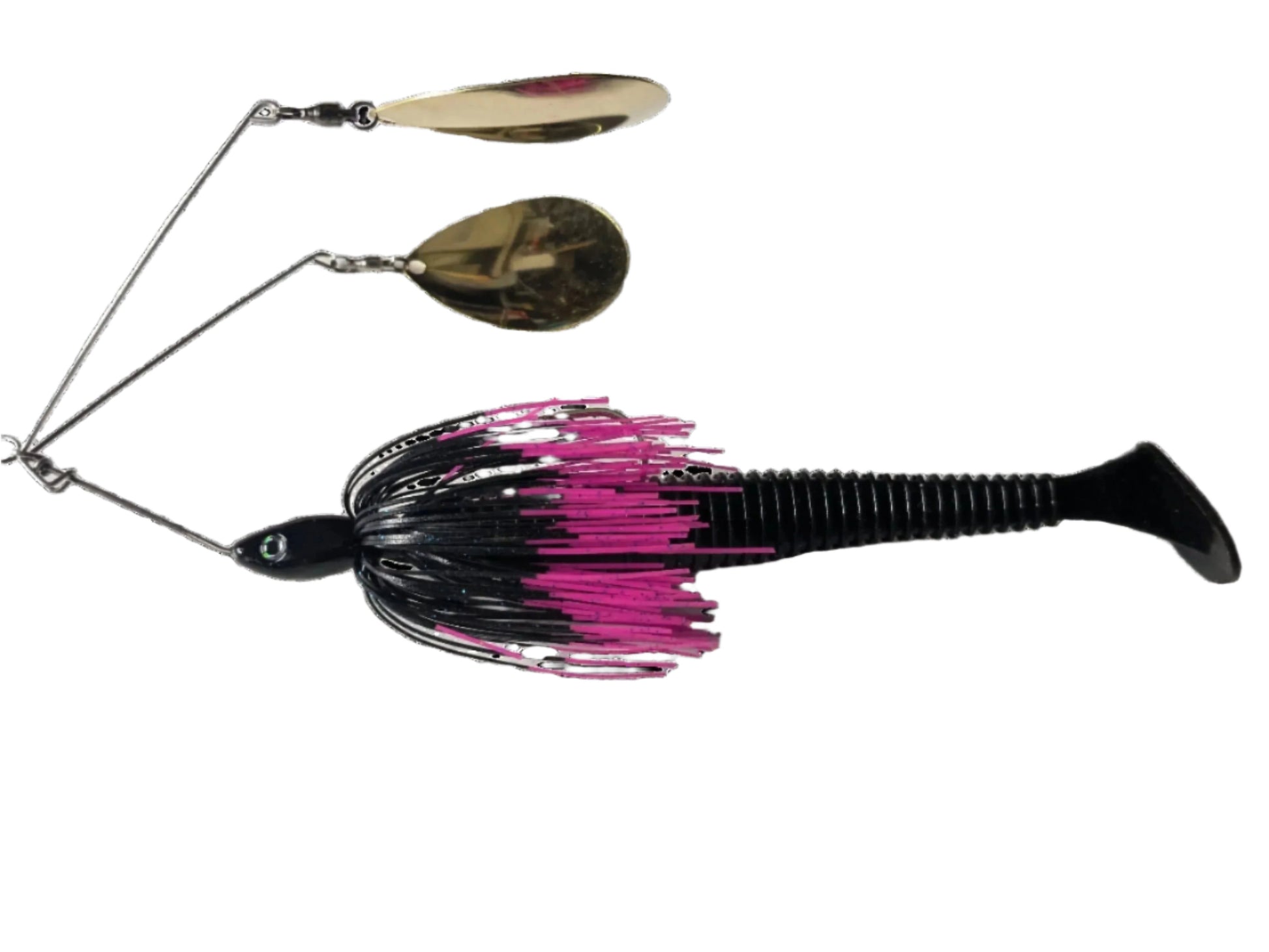 3/4oz BLACK & PINK TWIN ARM Spinnerbait Rigged 7'' Paddle Tail Plastic